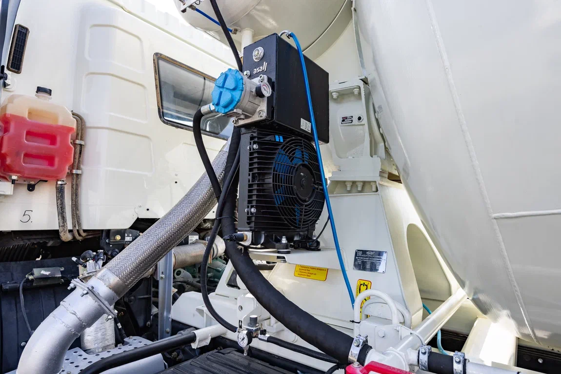 Со спальным местом Система питания Электронная, BOSH EDC 17 - E4 Сцепление SACHS / YIDONG, cухое однодисковое, с гидравлическим приводом и пневмоусилением Рулевое управление TRW FAWER, гидроусилитель руля Подвеска Передняя: зависимая, полуэллиптические рессоры, гидравлические амортизаторы Задняя: зависимая, балансирная,  полуэллиптические рессоры. Тормозная система Пневматический двухконтурный привод с разделением на контуры на переднюю и заднюю ось, с ABS  Шины 315/80R22.5 Кабина FAW J6, цельнометаллическая, двухдверная, двухместная, откидывающася вперед. Система подогрева водобака. Данный тип воронки "непроливайка" соединяет ее в единую конструкцию со смесительным барабаном, позволяет загружать бетон быстрее и большими партиями не выплескивая его при загрузке АБС. Так же при транспортировке по неровным участкам дороги и при трогании с места предотвращает выплескивание бетонной смеси через верх лопасти спирали барабана. А наличие дополнительных двух спиралей на первом конусе позволяет осуществлять более пл
